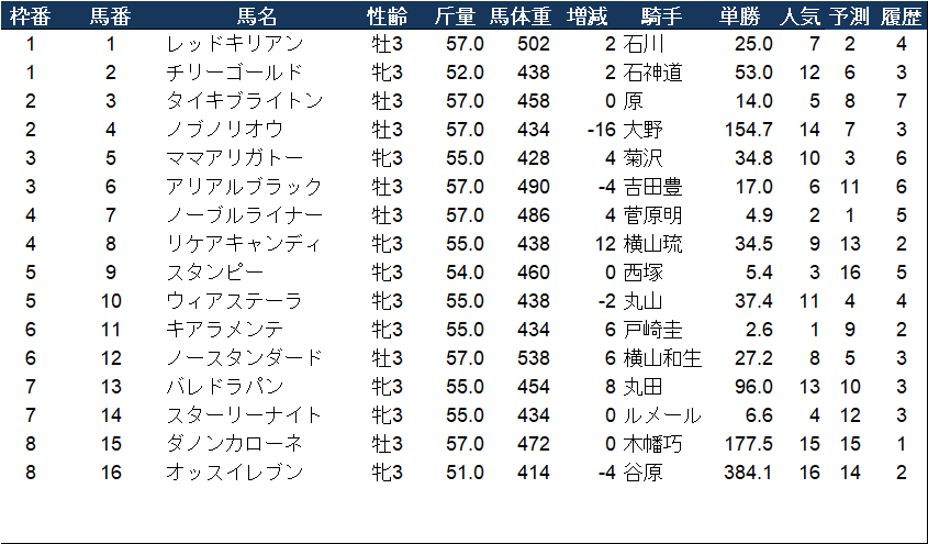 完成したコードで、実際に結果が分かっているレースを予測してみました。